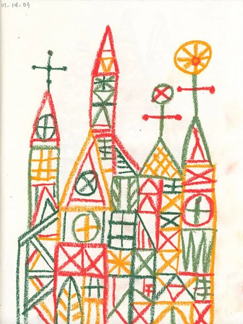 I did this every day for over a year. And I can’t recommend a daily discipline enough. So much creativity and problem solving must take place. Paying attention to my process and my materials continues to be motivational. Artistically, I was inspired by different artists at the time. For the idea of painting on the inside of flattened envelopes, I credit the Swiss artist Friedensreich Hundertwasser. In terms of the imagery… I guess: Seymour Chwast, Paul Klee, Milton Glaser, Morris Graves, Disney, Leo Lionni, and many others I’m sure.